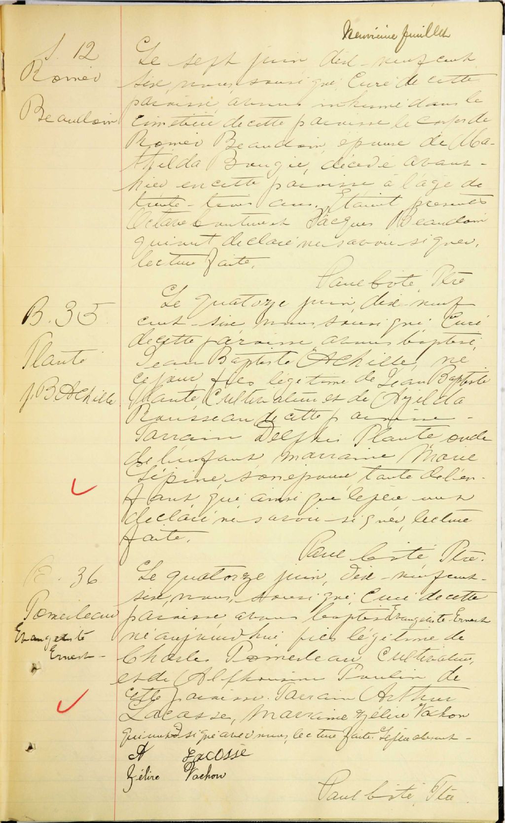 - Cette série regroupe les registres originaux de l'état civil, lesquels contiennent les enregistrements de baptêmes, de mariages et de sépultures consignés par le curé ou son représentant desservant la communauté de confession catholique de la paroisse Saint-Adolphe de Dudswell. On retrouve également, en règle générale, un index nominatif à la fin de chaque registre.Pour 1886 et 1887, voir Saint-Janvier de Weedon (CE501,S16)