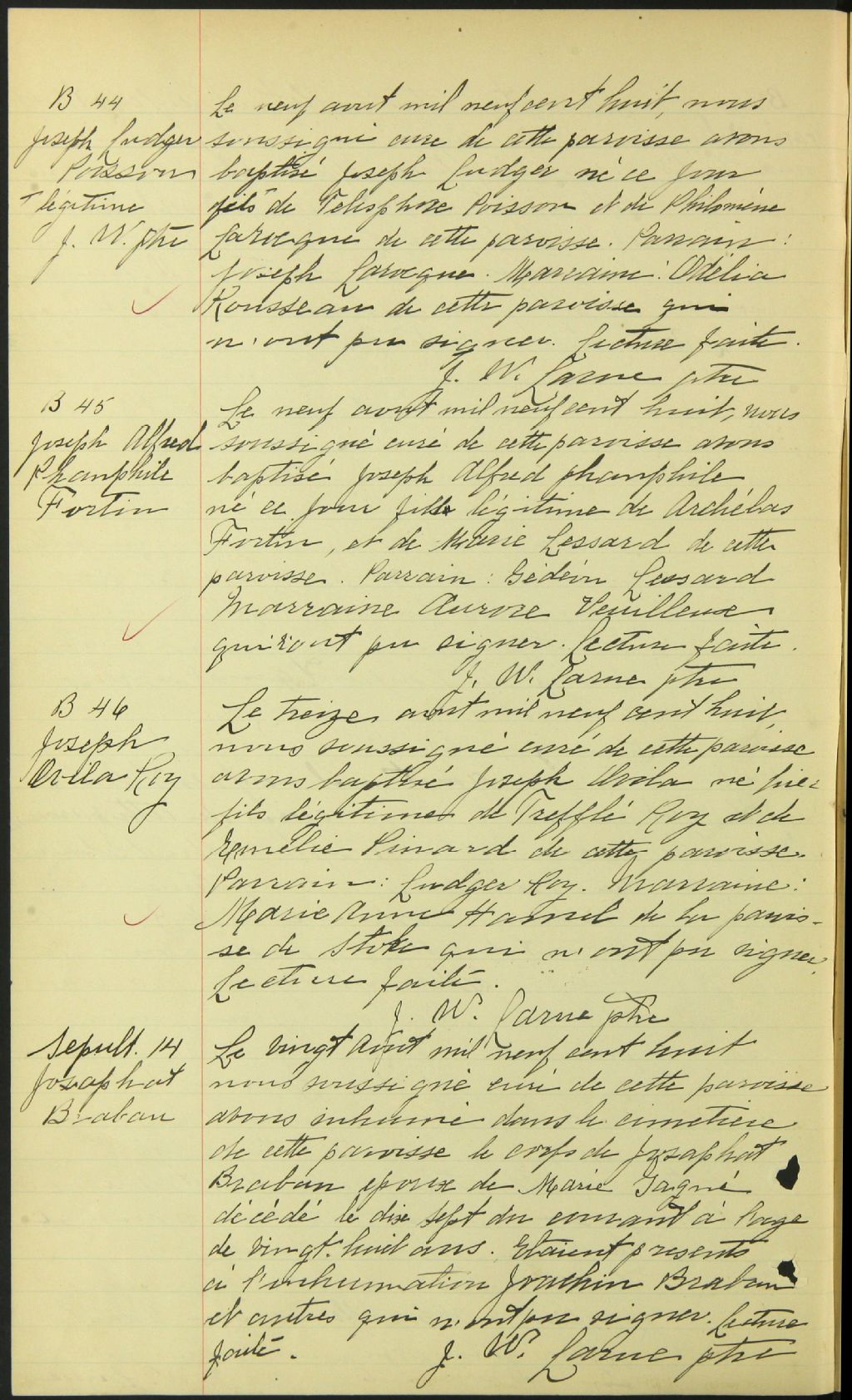 - Cette série regroupe les registres originaux de l'état civil, lesquels contiennent les enregistrements de baptêmes, de mariages et de sépultures consignés par le curé ou son représentant desservant la communauté de confession catholique de la paroisse Saint-Adolphe de Dudswell. On retrouve également, en règle générale, un index nominatif à la fin de chaque registre.Pour 1886 et 1887, voir Saint-Janvier de Weedon (CE501,S16)