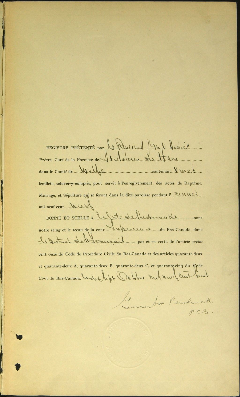 Saint-Adrien de Ham, 1887-1921, Archives nationales à Sherbrooke, Fonds Cour supérieure. District judiciaire de Saint-François. État civil, (05S,CE501,S99).