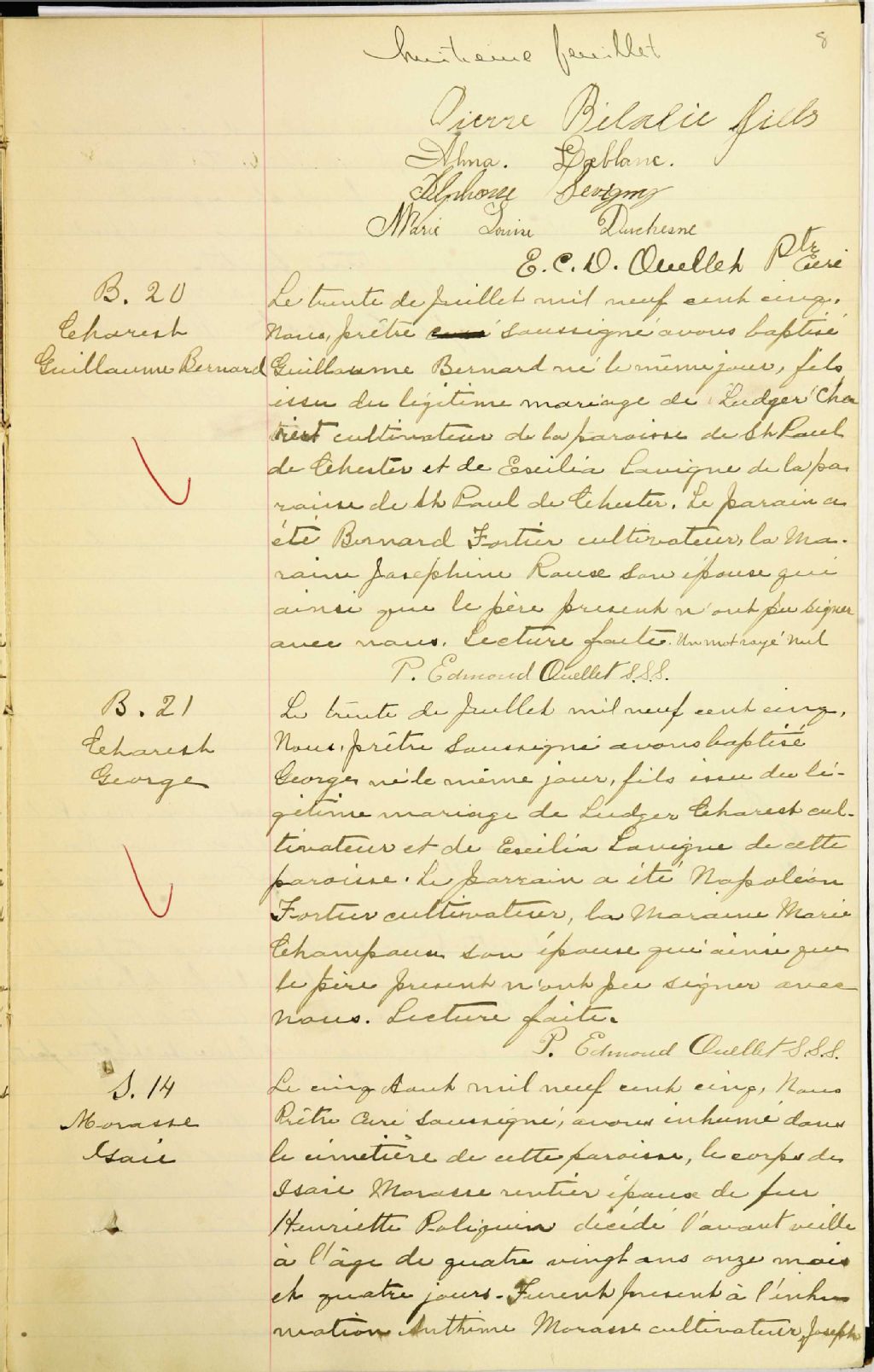 Notre-Dame-de-Lourdes de Ham-Nord, 1897-1921, Archives nationales à Sherbrooke, Fonds Cour supérieure. District judiciaire de Saint-François. État civil, (05S,CE501,S96).