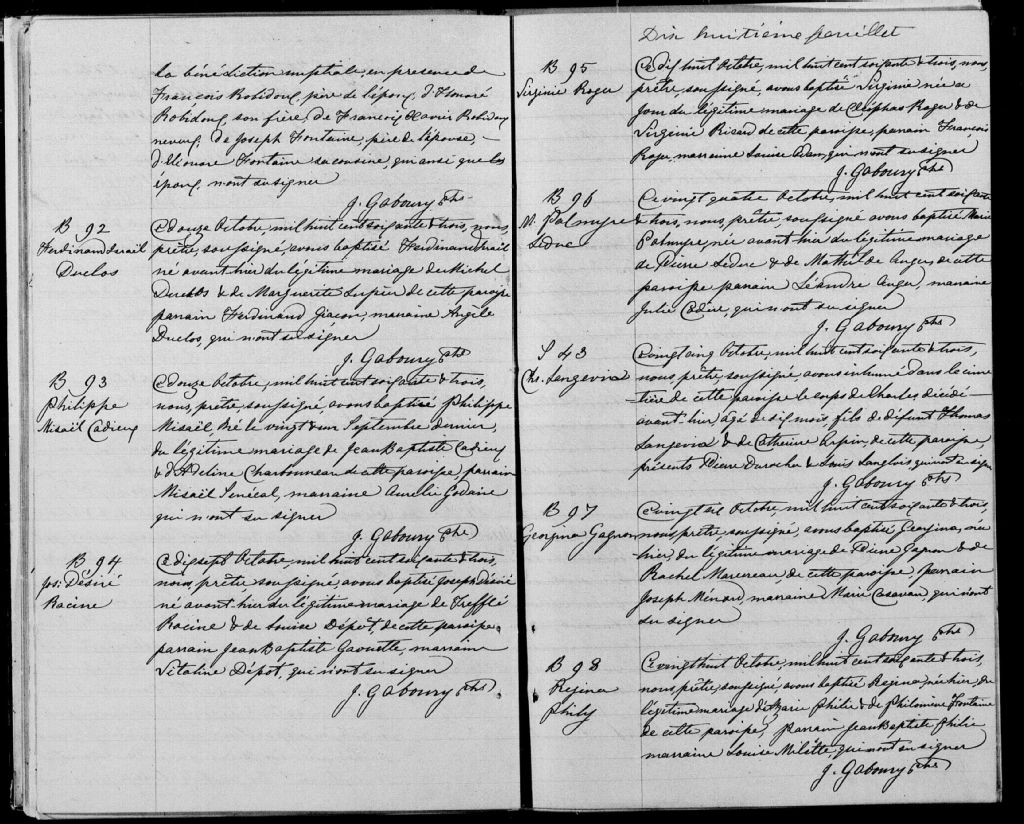 - Cette série regroupe les registres originaux de l'état civil, lesquels contiennent les enregistrements de baptêmes, de mariages et de sépultures consignés par le curé ou son représentant desservant la communauté de confession catholique de la paroisse de Sainte-Cécile de Milton pour la période 1847-1899. On retrouve également, en règle générale, un index nominatif situé à la fin de chaque registre