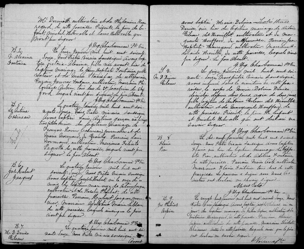 - Cette série regroupe les registres originaux de l'état civil, lesquels contiennent les enregistrements de baptêmes, de mariages et de sépultures consignés par le curé ou son représentant desservant la communauté de confession catholique de la paroisse de Sainte-Cécile de Milton pour la période 1847-1899. On retrouve également, en règle générale, un index nominatif situé à la fin de chaque registre
