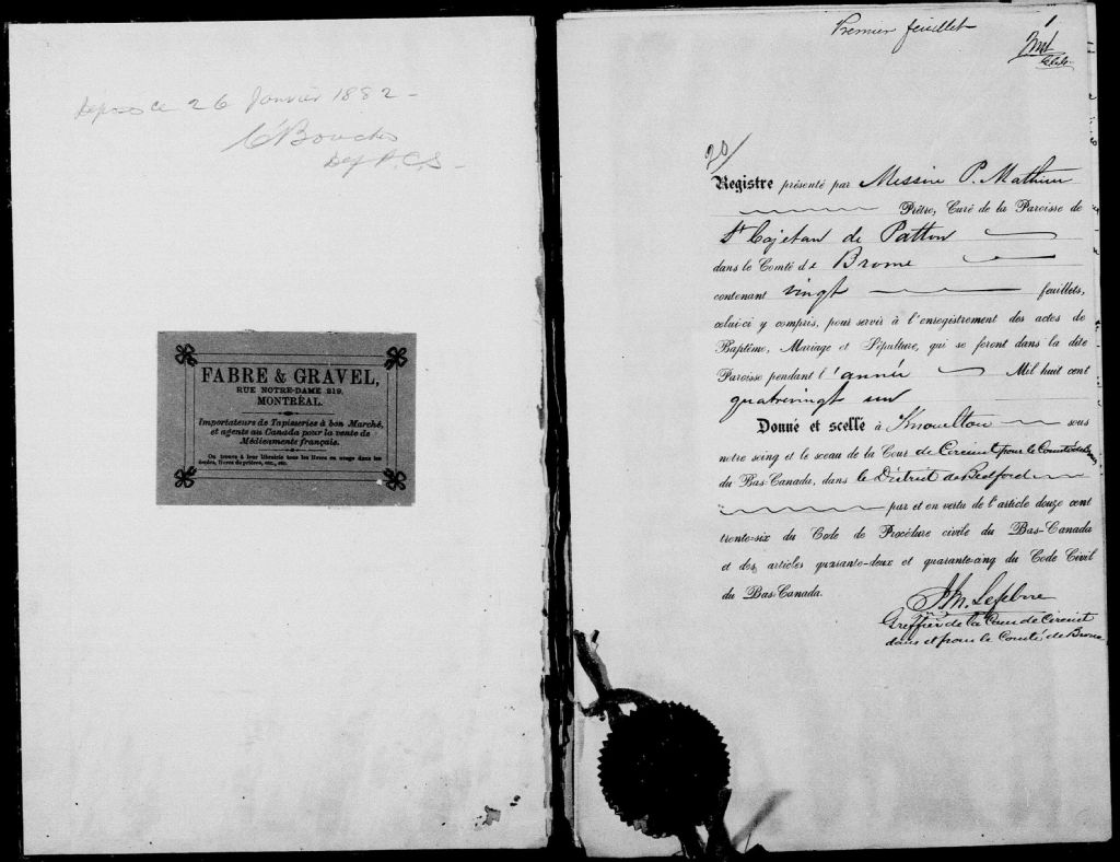 - Cette série regroupe les registres originaux de l'état civil, lesquels contiennent les enregistrements de baptêmes, de mariages et de sépultures consignés par le curé desservant la communauté de confession catholique de la paroisse de Saint-Cajetan-de-Potton pour les années 1881-1899. On retrouve également, en règle générale, un index nominatif situé à la fin de chaque registre