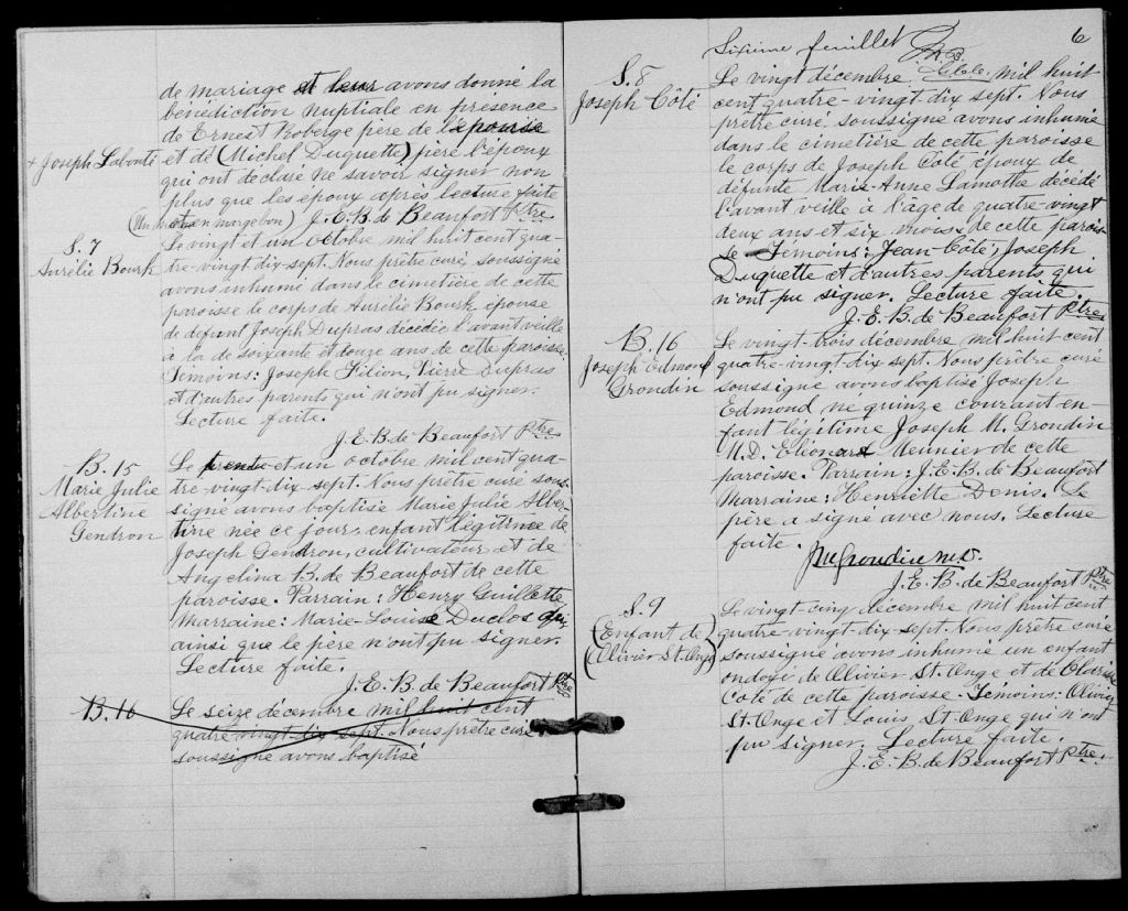 - Cette série regroupe les registres originaux de l'état civil, lesquels contiennent les enregistrements de baptêmes, de mariages et de sépultures consignés par le curé desservant la communauté de confession catholique de la paroisse de Saint-Cajetan-de-Potton pour les années 1881-1899. On retrouve également, en règle générale, un index nominatif situé à la fin de chaque registre