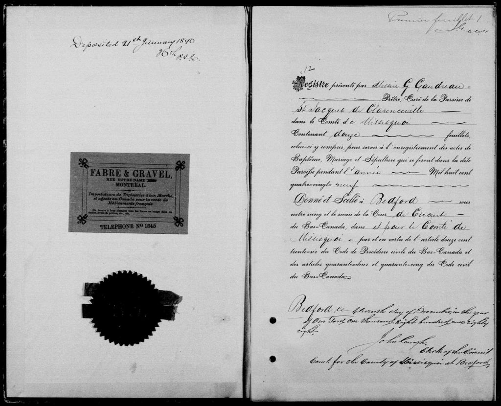 Saint-Jacques-le-Majeur, 1884-1899, Archives nationales à Sherbrooke, Fonds Cour supérieure. District judiciaire de Bedford. État civil, (05S,CE502,S114).