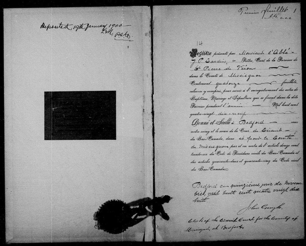 Saint-Pierre-de-Vérone, 1892-1899, Archives nationales à Sherbrooke, Fonds Cour supérieure. District judiciaire de Bedford. État civil, (05S,CE502,S115).