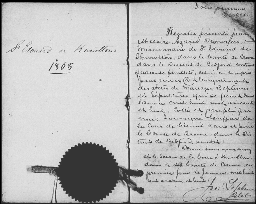 Saint-Édouard-de-Knowlton, 1868-1899, Archives nationales à Sherbrooke, Fonds Cour supérieure. District judiciaire de Bedford. État civil, (05S,CE502,S13).