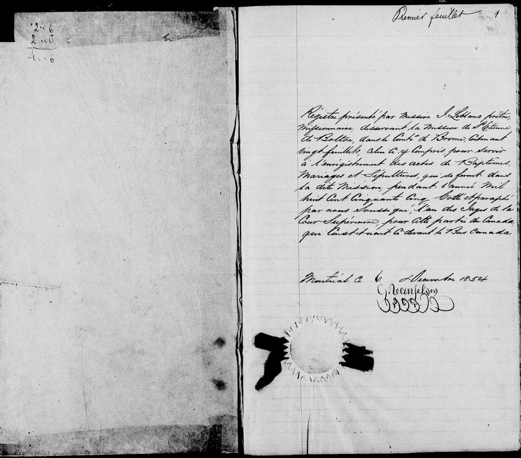 - Cette série regroupe les registres originaux de l'état civil, lesquels contiennent les enregistrements de baptêmes, de mariages et de sépultures consignés par le curé ou son représentant desservant la communauté de confession catholique de la paroisse de Saint-Étienne-de-Bolton pour la période 1851-1899. On retrouve également, en règle générale, un index nominatif situé à la fin de chaque registre
