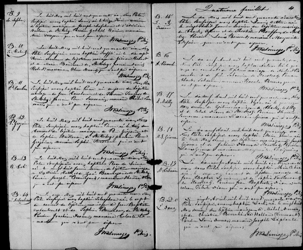 - Cette série regroupe les registres originaux de l'état civil, lesquels contiennent les enregistrements de baptêmes, de mariages et de sépultures consignés par le curé ou son représentant desservant la communauté de confession catholique de la paroisse de Notre-Dame-de-Bonsecours pour la période 1846-1899. On retrouve également, en règle générale, un index nominatif situé à la fin de chaque registre