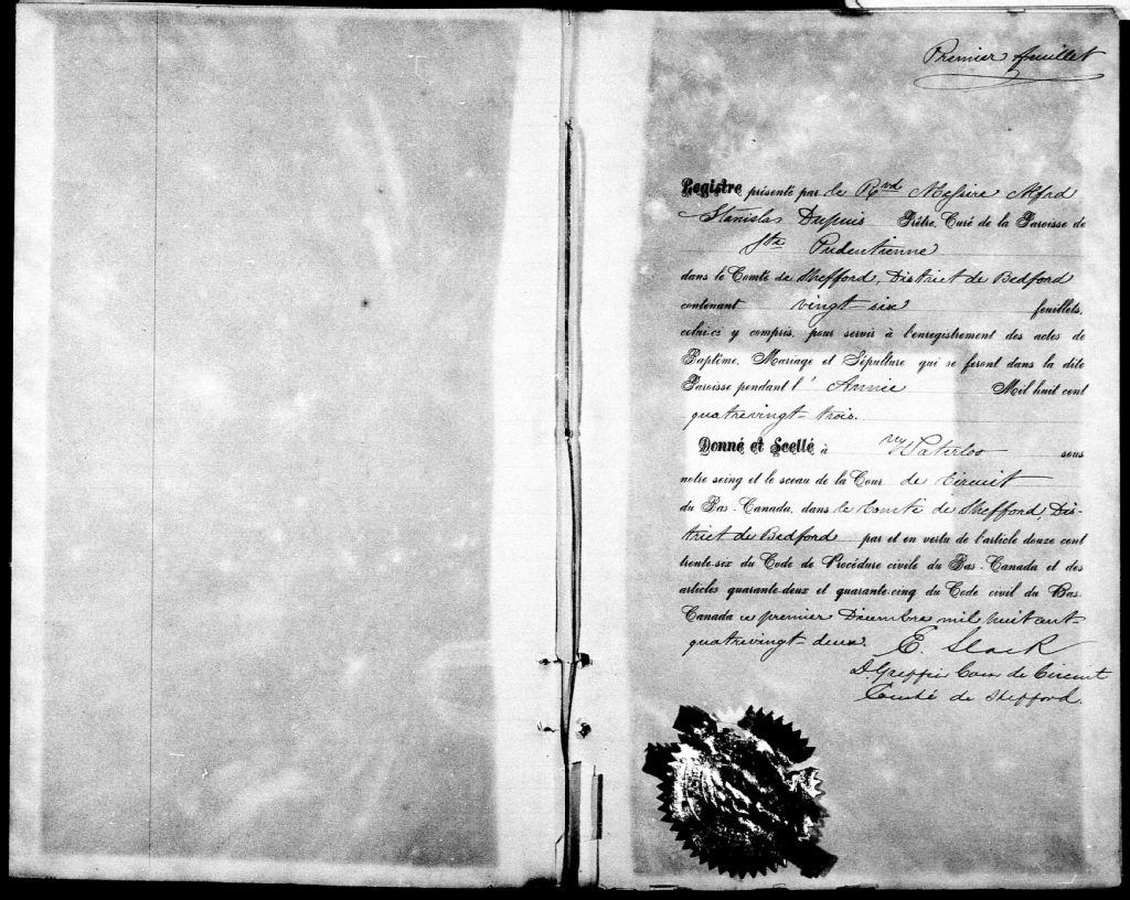 Sainte-Pudentienne, 1873-1899, Archives nationales à Sherbrooke, Fonds Cour supérieure. District judiciaire de Bedford. État civil, (05S,CE502,S20).