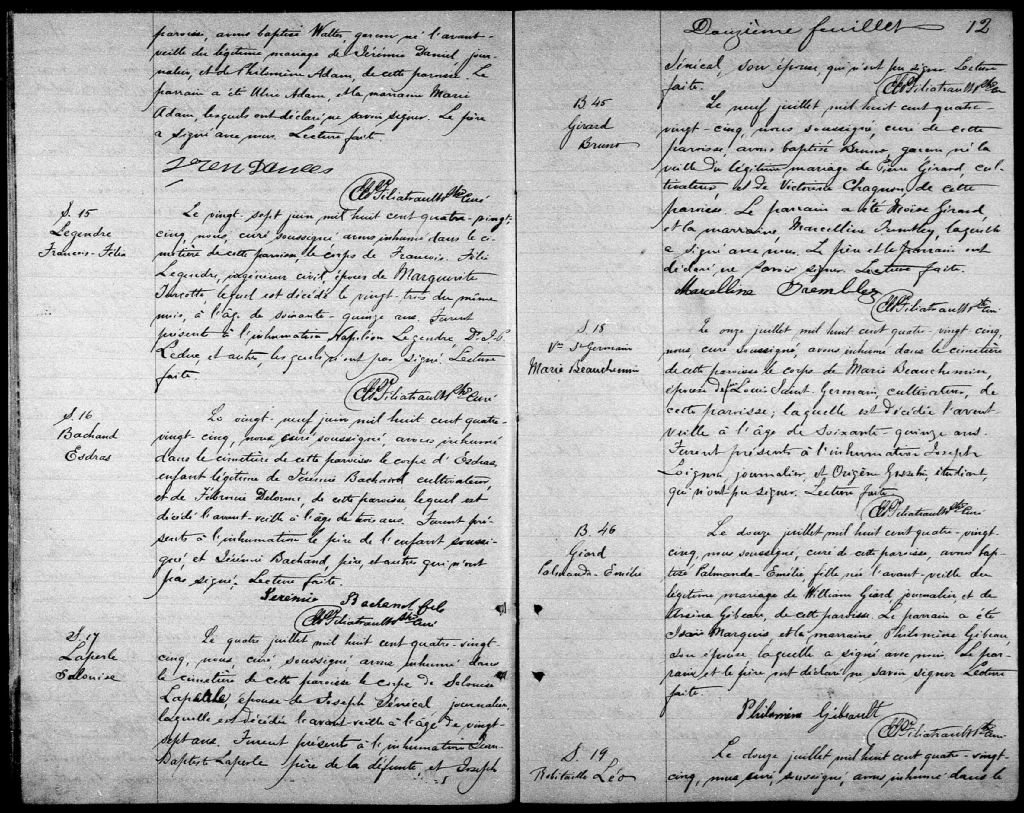 Sainte-Pudentienne, 1873-1899, Archives nationales à Sherbrooke, Fonds Cour supérieure. District judiciaire de Bedford. État civil, (05S,CE502,S20).