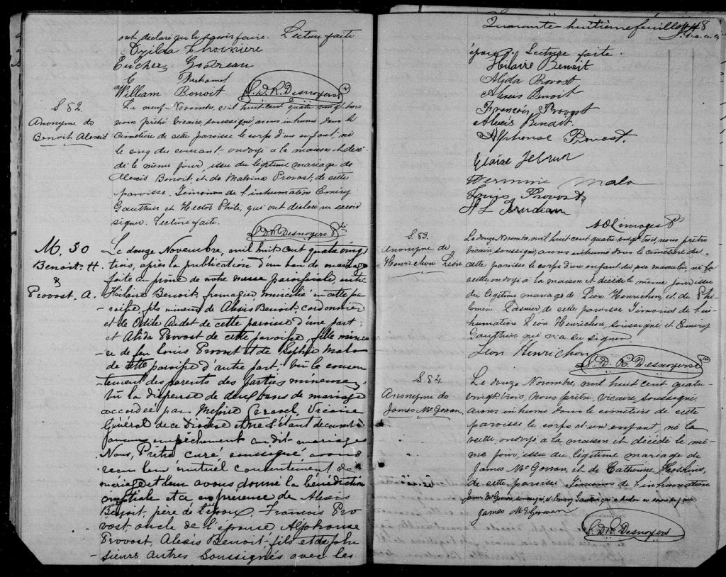 Saint-Romuald-de-Farnham, 1850-1899, Archives nationales à Sherbrooke, Fonds Cour supérieure. District judiciaire de Bedford. État civil, (05S,CE502,S21).