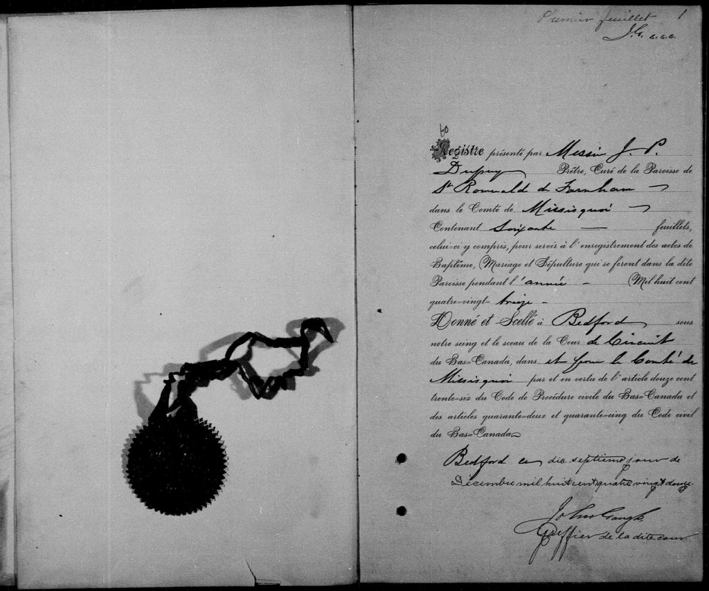 Saint-Romuald-de-Farnham, 1850-1899, Archives nationales à Sherbrooke, Fonds Cour supérieure. District judiciaire de Bedford. État civil, (05S,CE502,S21).