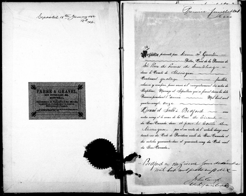 - Cette série regroupe les registres originaux de l'état civil, lesquels contiennent les enregistrements de baptêmes, de mariages et de sépultures consignés par le curé ou son représentant desservant la communauté de confession catholique de la paroisse de Sainte-Rose-de-Lima de Sweetsburg pour la période 1876-1899. On retrouve également, en règle générale, un index nominatif situé à la fin de chaque registre