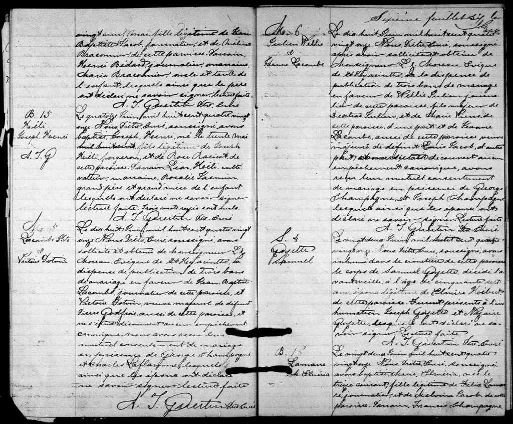 - Cette série regroupe les registres originaux de l'état civil, lesquels contiennent les enregistrements de baptêmes, de mariages et de sépultures consignés par le curé ou son représentant desservant la communauté de confession catholique de la paroisse de Sainte-Rose-de-Lima de Sweetsburg pour la période 1876-1899. On retrouve également, en règle générale, un index nominatif situé à la fin de chaque registre