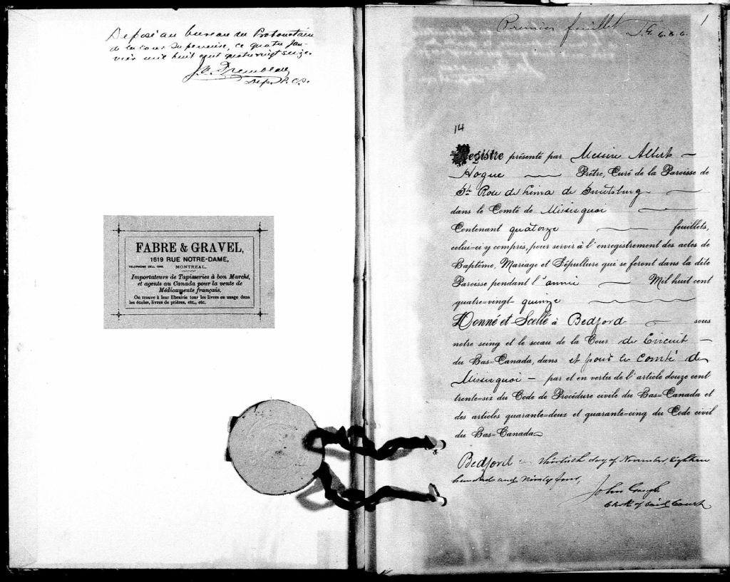 - Cette série regroupe les registres originaux de l'état civil, lesquels contiennent les enregistrements de baptêmes, de mariages et de sépultures consignés par le curé ou son représentant desservant la communauté de confession catholique de la paroisse de Sainte-Rose-de-Lima de Sweetsburg pour la période 1876-1899. On retrouve également, en règle générale, un index nominatif situé à la fin de chaque registre