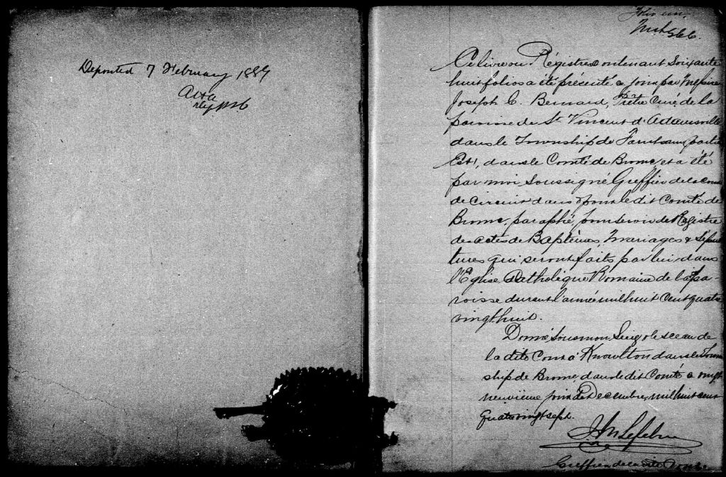 Saint-Vincent-Ferrier, 1873-1899, Archives nationales à Sherbrooke, Fonds Cour supérieure. District judiciaire de Bedford. État civil, (05S,CE502,S24).