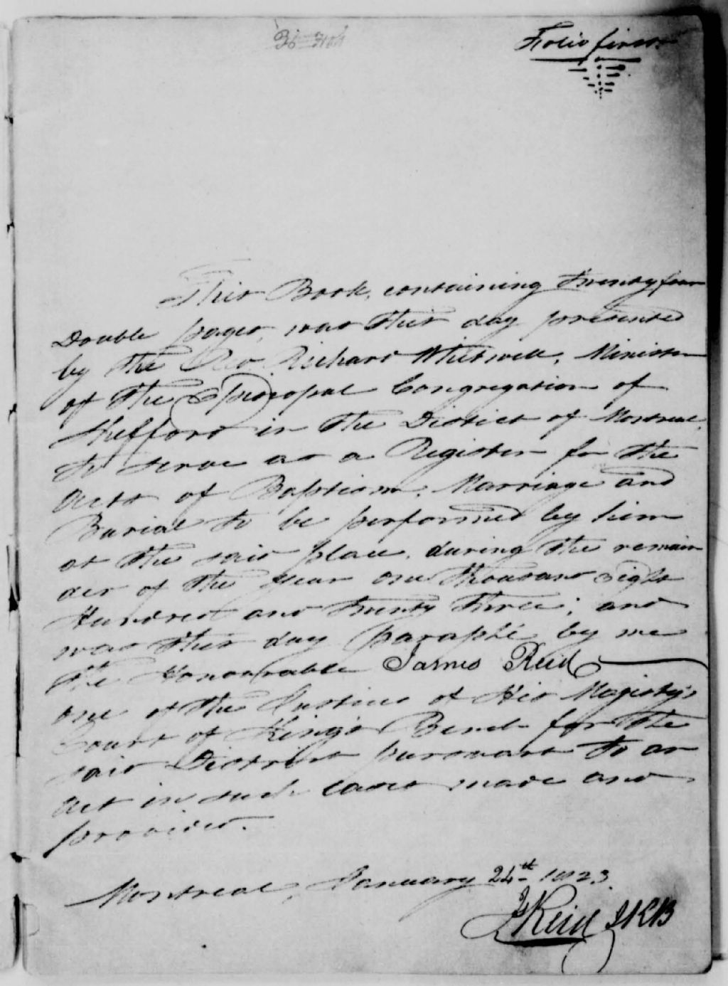 - Cette série regroupe les registres originaux de l'état civil, lesquels contiennent les enregistrements de baptêmes, de mariages et de sépultures consignés par le ministre desservant la communauté de confession anglicane de Shefford-Ouest dans le canton de Shefford pour la période 1823-1899. On retrouve également, en règle générale, un index nominatif situé à la fin de chaque registre