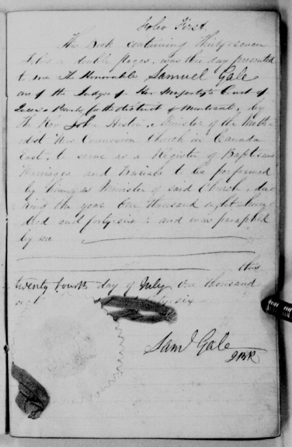 - Cette série regroupe les registres originaux de l'état civil, lesquels contiennent les enregistrements de baptêmes, de mariages et de sépultures consignés par le ministre desservant la communauté de confession méthodiste wesleyenne (New Connexion) de Dunham pour la période 1846-1874. On retrouve également, en règle générale, un index nominatif situé à la fin de chaque registre