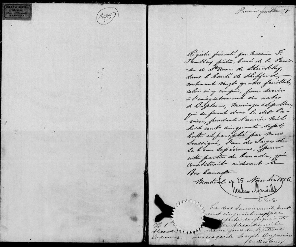 - Cette série regroupe les registres originaux de l'état civil, lesquels contiennent les enregistrements de baptêmes, de mariages et de sépultures consignés par le curé ou son représentant desservant la communauté de confession catholique de la paroisse de Sainte-Anne-de-la-Rochelle pour la période 1857-1899. On retrouve également, en règle générale, un index nominatif situé à la fin de chaque registre