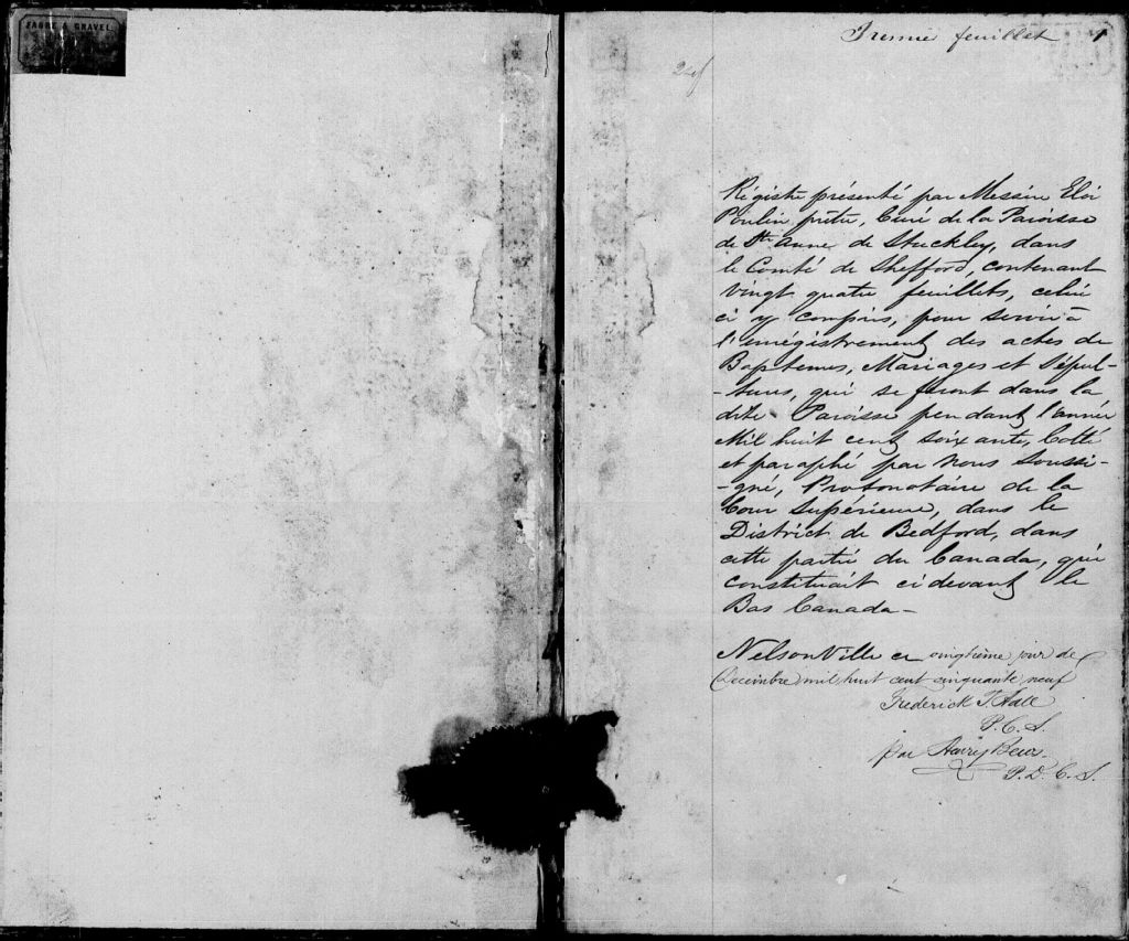 - Cette série regroupe les registres originaux de l'état civil, lesquels contiennent les enregistrements de baptêmes, de mariages et de sépultures consignés par le curé ou son représentant desservant la communauté de confession catholique de la paroisse de Sainte-Anne-de-la-Rochelle pour la période 1857-1899. On retrouve également, en règle générale, un index nominatif situé à la fin de chaque registre