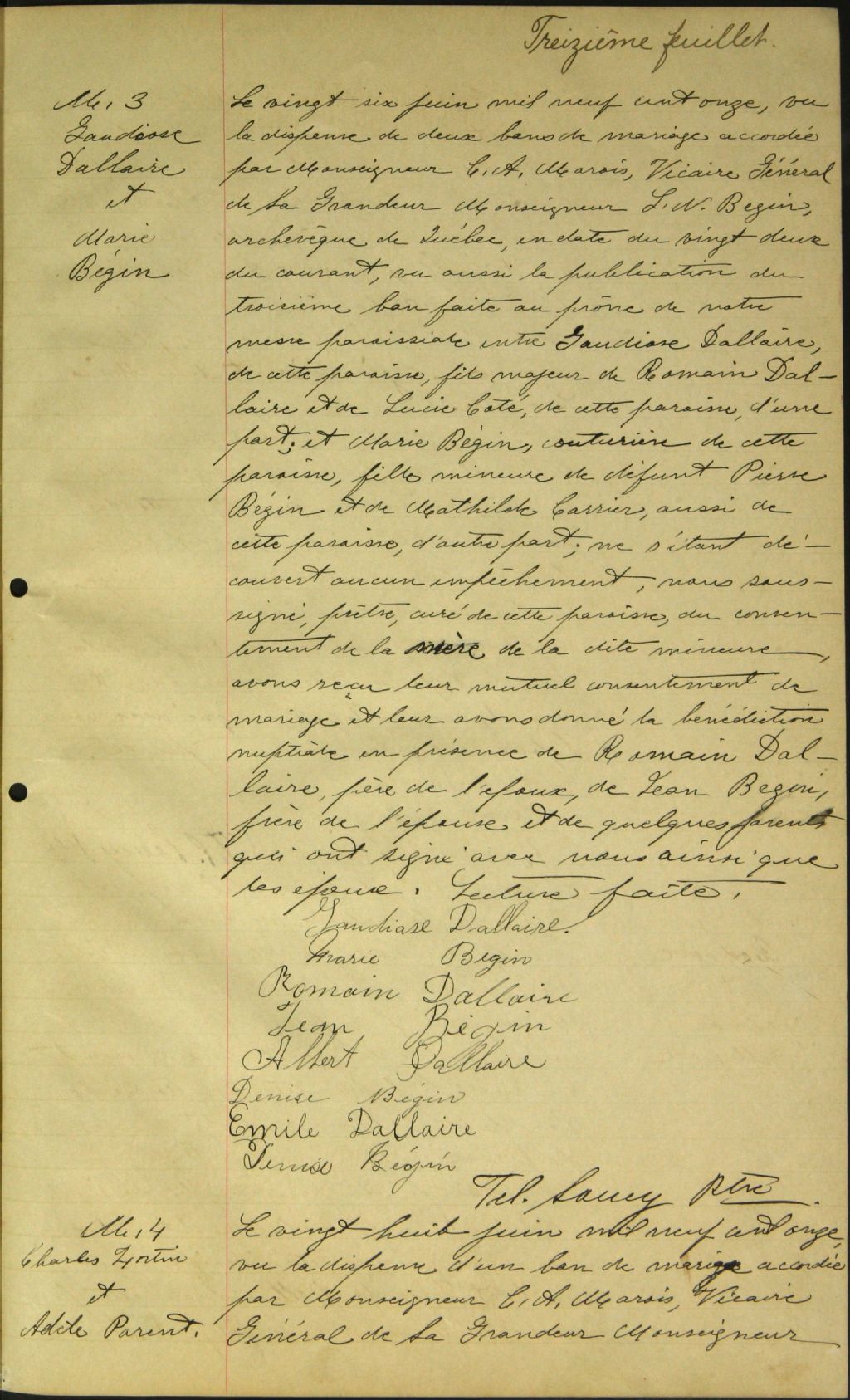 - Cette série regroupe les registres originaux de l'état civil, lesquels contiennent les enregistrements de baptêmes, de mariages et de sépultures consignés par le curé ou son représentant desservant la communauté de confession catholique de la paroisse Saint-Ludger. On retrouve également, en règle générale, un index nominatif à la fin de chaque registre.Le registre de 1918 comprend quelques actes de la paroisse de Saint-Hubert de Spaulding (CE503,S19)Avant 1876, voir Saint-Samuel de Gayhurst (CE503,S13). Pour 1913, voir aussi Saint-Hubert de Spaulding (CE503,S19)