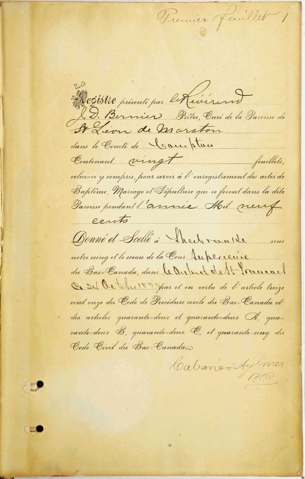 Saint-Léon de Marston, 1893-1921, Archives nationales à Sherbrooke, Fonds Cour supérieure. District judiciaire de Mégantic. État civil, (05S,CE503,S10).