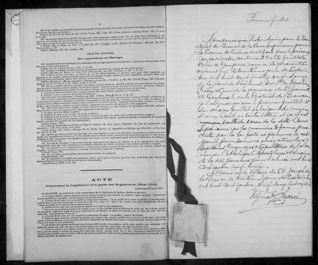 Cette série regroupe les registres originaux de l'état civil, lesquels contiennent les enregistrements de baptêmes, de mariages et de sépultures consignés par le curé ou son représentant desservant la communauté de confession catholique de la paroisse Saint-Samuel à Lac-Drolet. On retrouve également, en règle générale, un index nominatif à la fin de chaque registre.Le registre de 1917 comprend quelques actes de Saint-Hubert de Spaulding (CE503,S19); celui de 1918 en comprend de Sainte-Cécile (CE503,S18)Avant 1884, voir Saint-Sébastien (CE503,S14); pour 1913, voir aussi Saint-Hubert de Spaulding (CE503,S19)