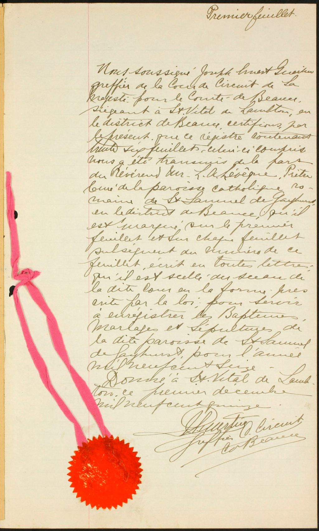 Saint-Samuel de Gayhurst, 1884-1921, Archives nationales à Sherbrooke, Fonds Cour supérieure. District judiciaire de Mégantic. État civil, (05S,CE503,S13).