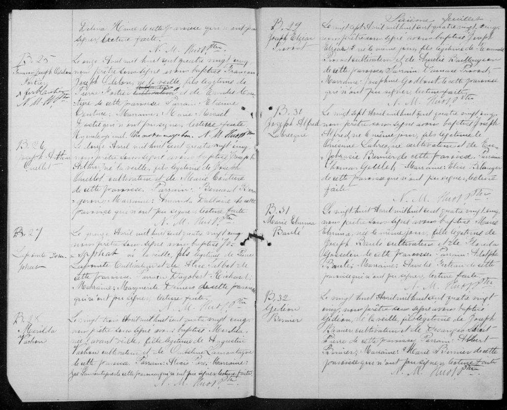 - Cette série regroupe les registres originaux de l'état civil, lesquels contiennent les enregistrements de baptêmes, de mariages et de sépultures consignés par le curé ou son représentant desservant la communauté de confession catholique de la paroisse Saint-Vital de Lambton. On retrouve également, en règle générale, un index nominatif à la fin de chaque registre.Avant 1881, voir Saint-Vital de Lambton (CE305,S25) conservé au Centre d'archives de Québec. Quelques entrées sont enregistrées dans les registres de 1877 à 1881 de la paroisse Saint-Romain (CE503,S12).