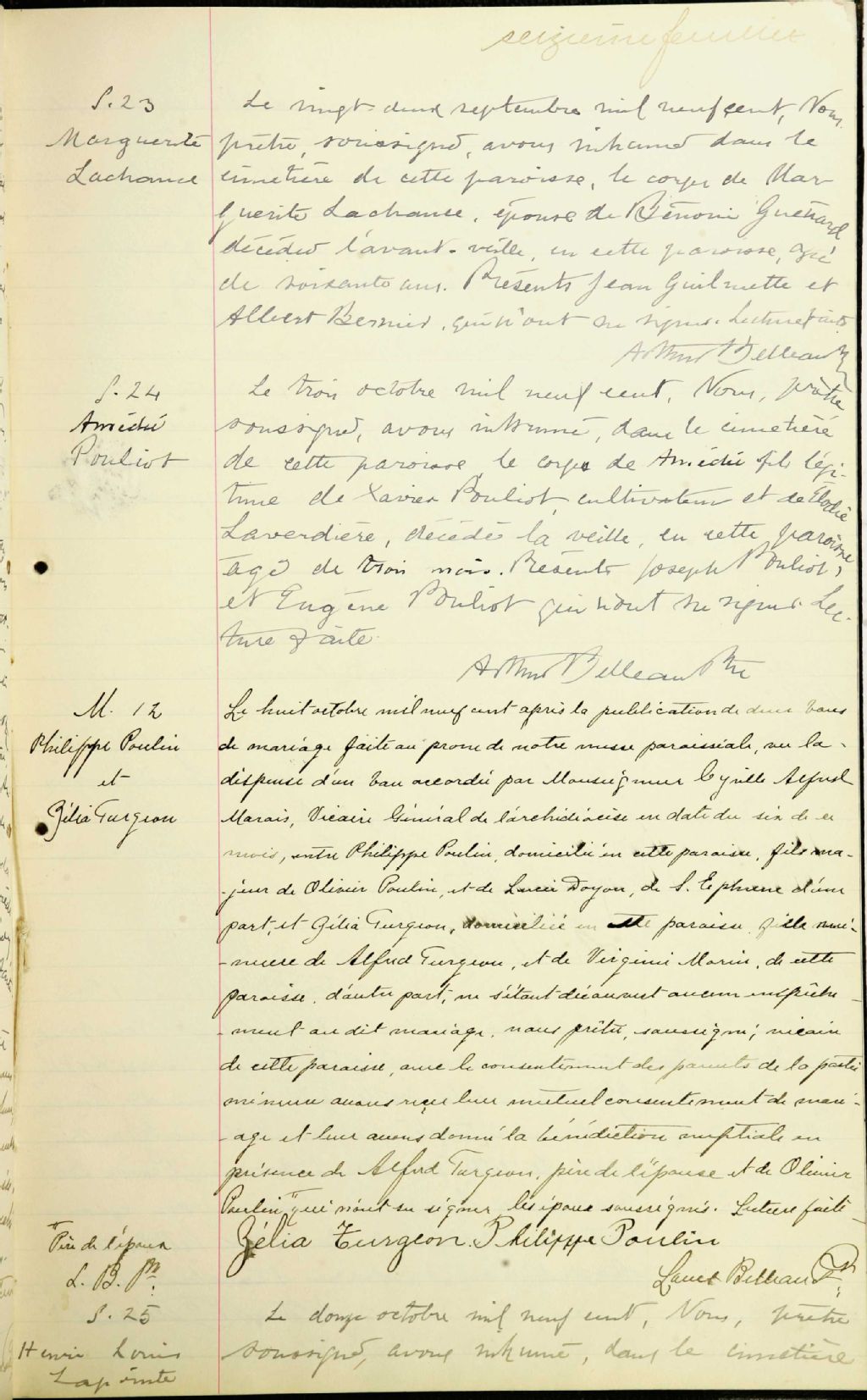 - Cette série regroupe les registres originaux de l'état civil, lesquels contiennent les enregistrements de baptêmes, de mariages et de sépultures consignés par le curé ou son représentant desservant la communauté de confession catholique de la paroisse Saint-Vital de Lambton. On retrouve également, en règle générale, un index nominatif à la fin de chaque registre.Avant 1881, voir Saint-Vital de Lambton (CE305,S25) conservé au Centre d'archives de Québec. Quelques entrées sont enregistrées dans les registres de 1877 à 1881 de la paroisse Saint-Romain (CE503,S12).