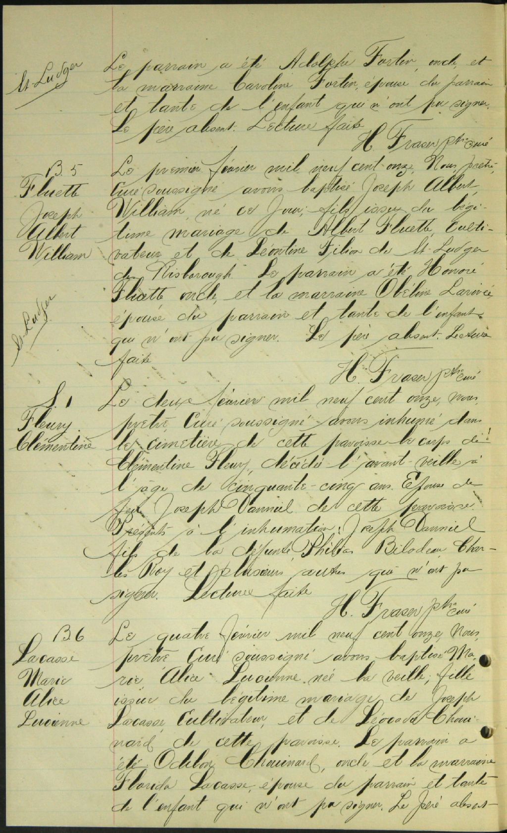 Cette série regroupe les registres originaux de l'état civil, lesquels contiennent les enregistrements de baptêmes, de mariages et de sépultures consignés par le curé ou son représentant desservant la communauté de confession catholique de la paroisse Saint-Hubert. On retrouve également, en règle générale, un index nominatif à la fin de chaque registreLe registre de 1913 comprend des actes de Saint-Ludger (CE503,S11), de Saint-Ephrem-de-Tring (CE306,S10) , de Sainte-Agnès (CE503,S17) et de Saint-Samuel (CE503,S13).