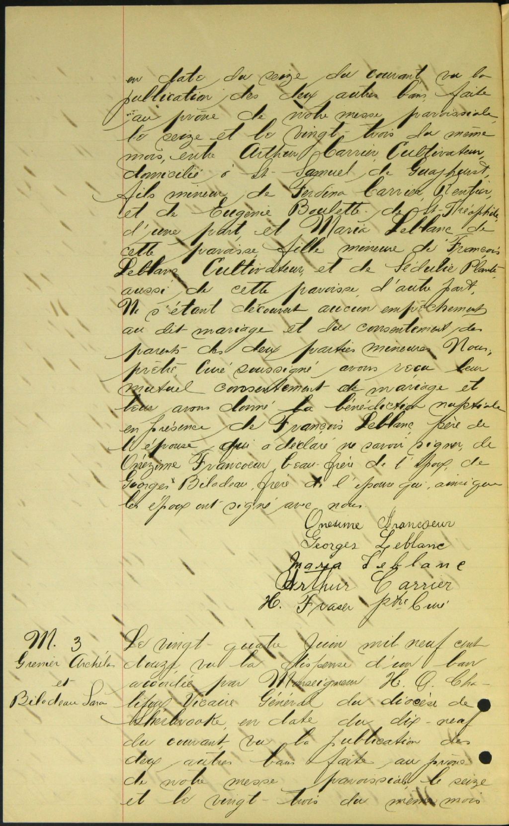 Cette série regroupe les registres originaux de l'état civil, lesquels contiennent les enregistrements de baptêmes, de mariages et de sépultures consignés par le curé ou son représentant desservant la communauté de confession catholique de la paroisse Saint-Hubert. On retrouve également, en règle générale, un index nominatif à la fin de chaque registreLe registre de 1913 comprend des actes de Saint-Ludger (CE503,S11), de Saint-Ephrem-de-Tring (CE306,S10) , de Sainte-Agnès (CE503,S17) et de Saint-Samuel (CE503,S13).