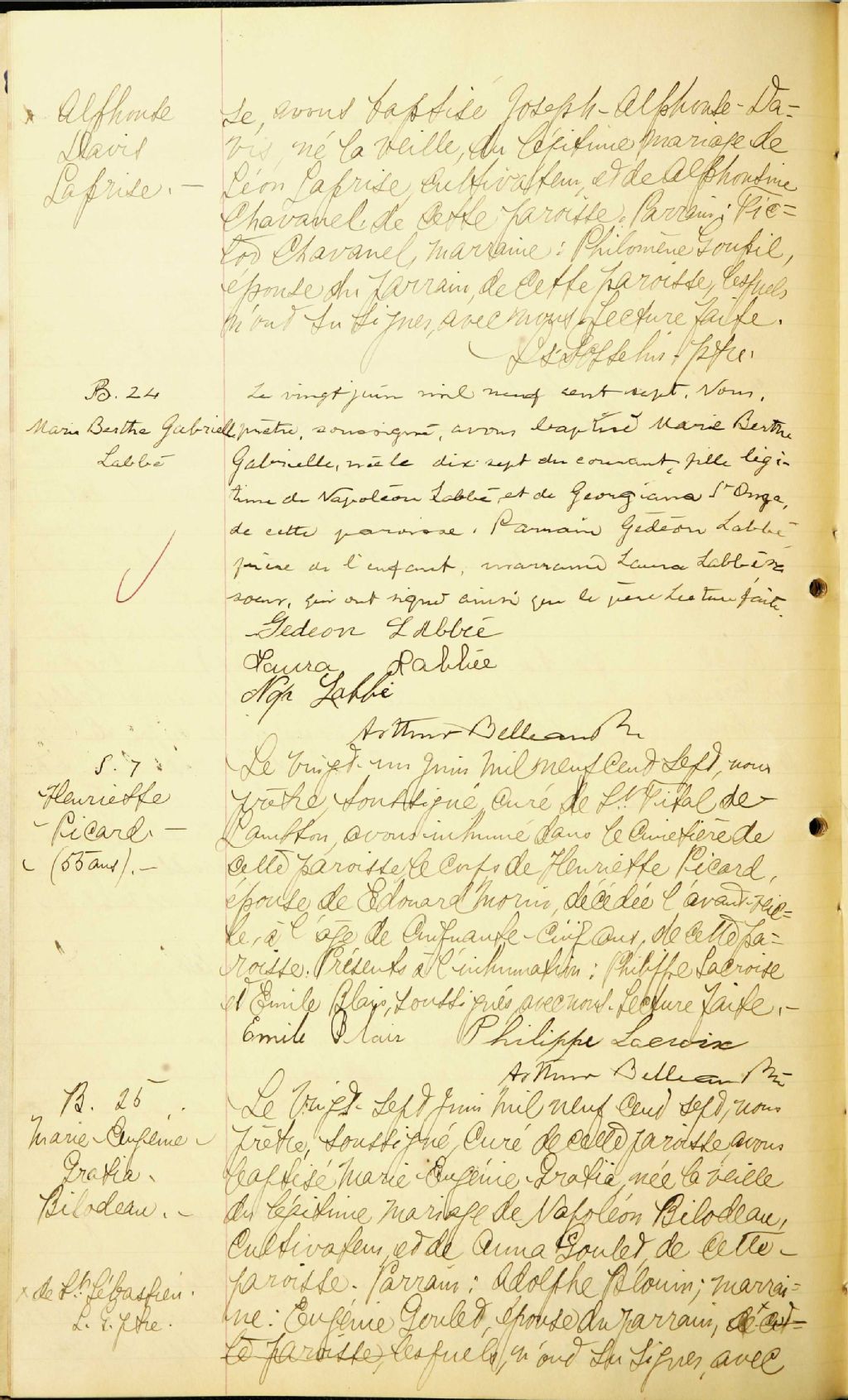 - Cette série regroupe les registres originaux de l'état civil, lesquels contiennent les enregistrements de baptêmes, de mariages et de sépultures consignés par le curé ou son représentant desservant la communauté de confession catholique de la paroisse Sainte-Martine de Courcelles. On retrouve également, en règle générale, un index nominatif à la fin de chaque registre