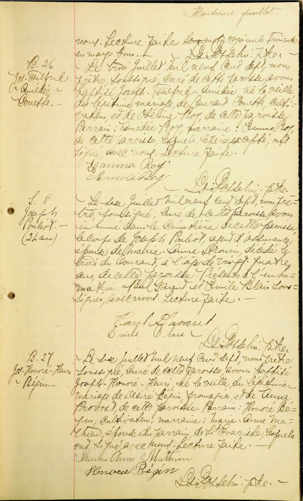 - Cette série regroupe les registres originaux de l'état civil, lesquels contiennent les enregistrements de baptêmes, de mariages et de sépultures consignés par le curé ou son représentant desservant la communauté de confession catholique de la paroisse Sainte-Martine de Courcelles. On retrouve également, en règle générale, un index nominatif à la fin de chaque registre
