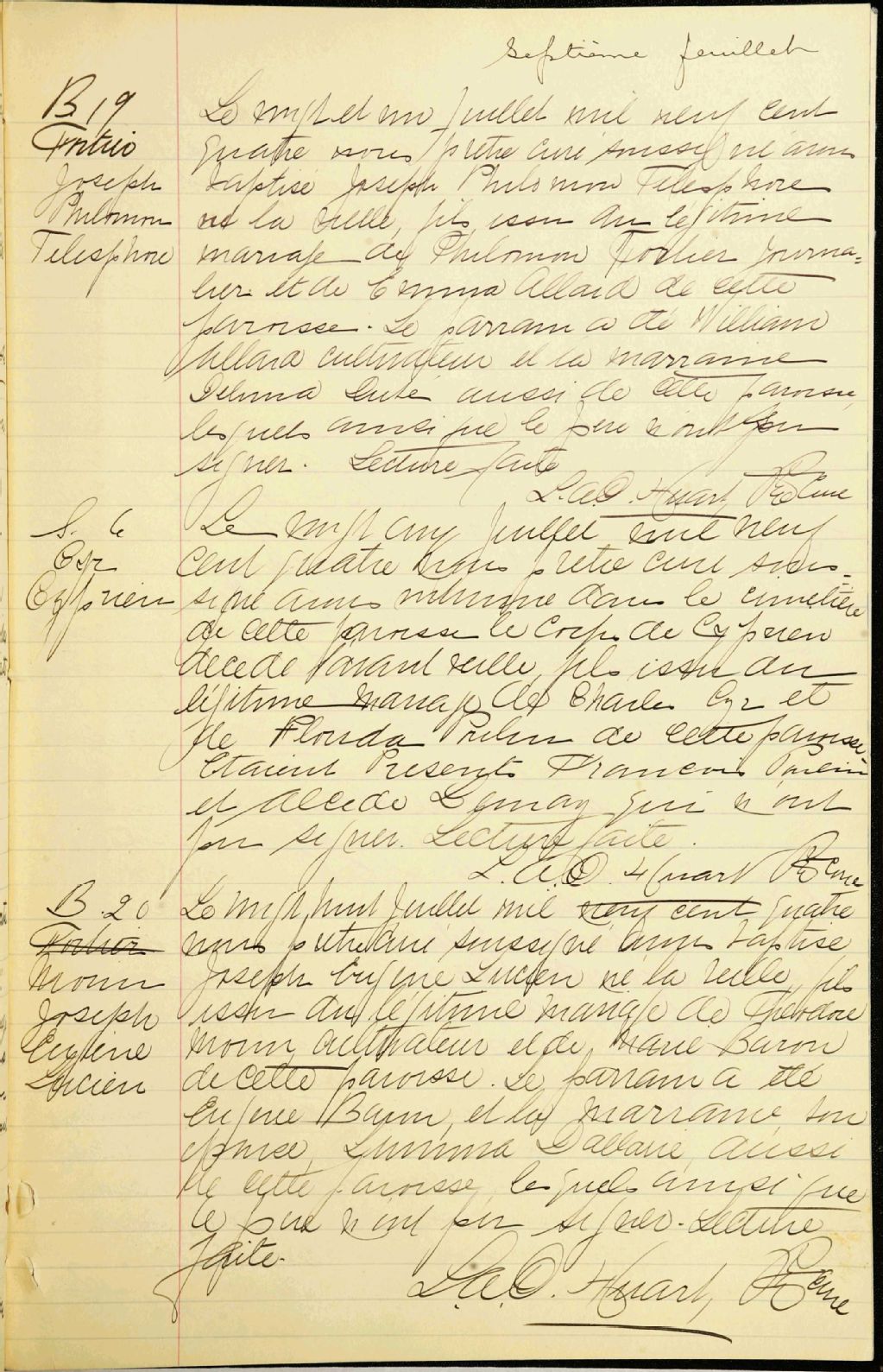 - Cette série regroupe les registres de l'état civil, originaux pour la plupart, lesquels contiennent les enregistrements de baptêmes, de mariages et de sépultures consignés par le curé ou son représentant desservant la communauté de confession catholique de la paroisse Saint-Augustin de Saint-Augustin-de-Woburn. On retrouve également, en règle générale, un index nominatif à la fin de chaque registre.Le registre de 1898 comprend aussi les entrées pour la paroisse Saint-Joseph de Beauce (CE306,S19).Les registres de 1916 et de 1917 comprennent quelques entrées pour la mission de Louise, située dans le canton du même nom; le territoire de cette mission occupé par des chantiers de bûcherons chevauche la région de Woburn et le nord du Maine.Le registre de 1921 contient un acte de la mission de Saint-Hyacinthe de Ditchfield.