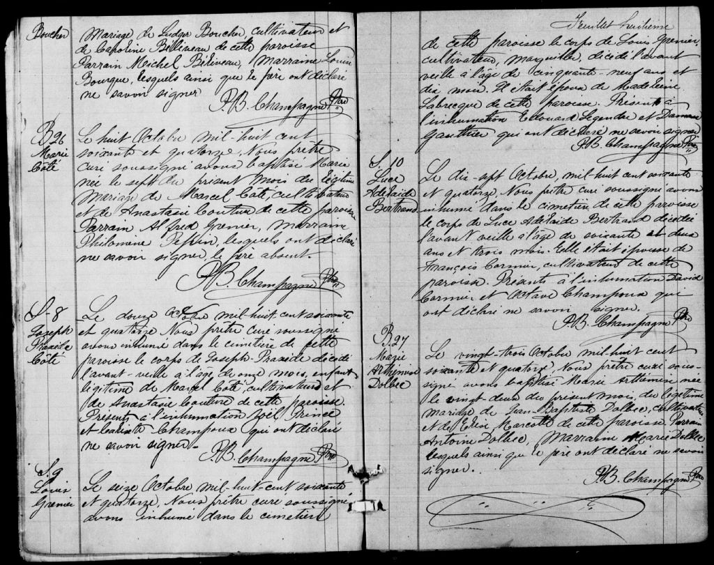 Saint-Gabriel de Stratford, 1857-1921, Archives nationales à Sherbrooke, Fonds Cour supérieure. District judiciaire de Mégantic. État civil, (05S,CE503,S9).