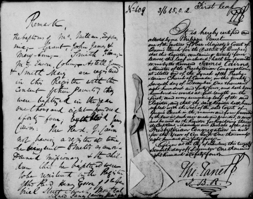 Metis Beach Presbyterian Church, 1844-1911 ; 1913-1921, Archives nationales à Rimouski, Fonds Cour supérieure. District judiciaire de Rimouski. État civil, (01R,CE101,S16).