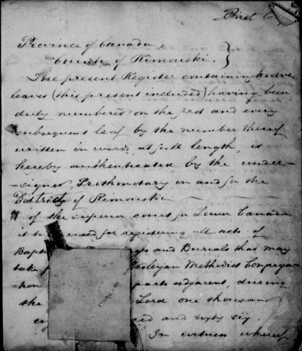 Metis Beach Wesleyan Methodist Congregation, 1866-1921, Archives nationales à Rimouski, Fonds Cour supérieure. District judiciaire de Rimouski. État civil, (01R,CE101,S18).
