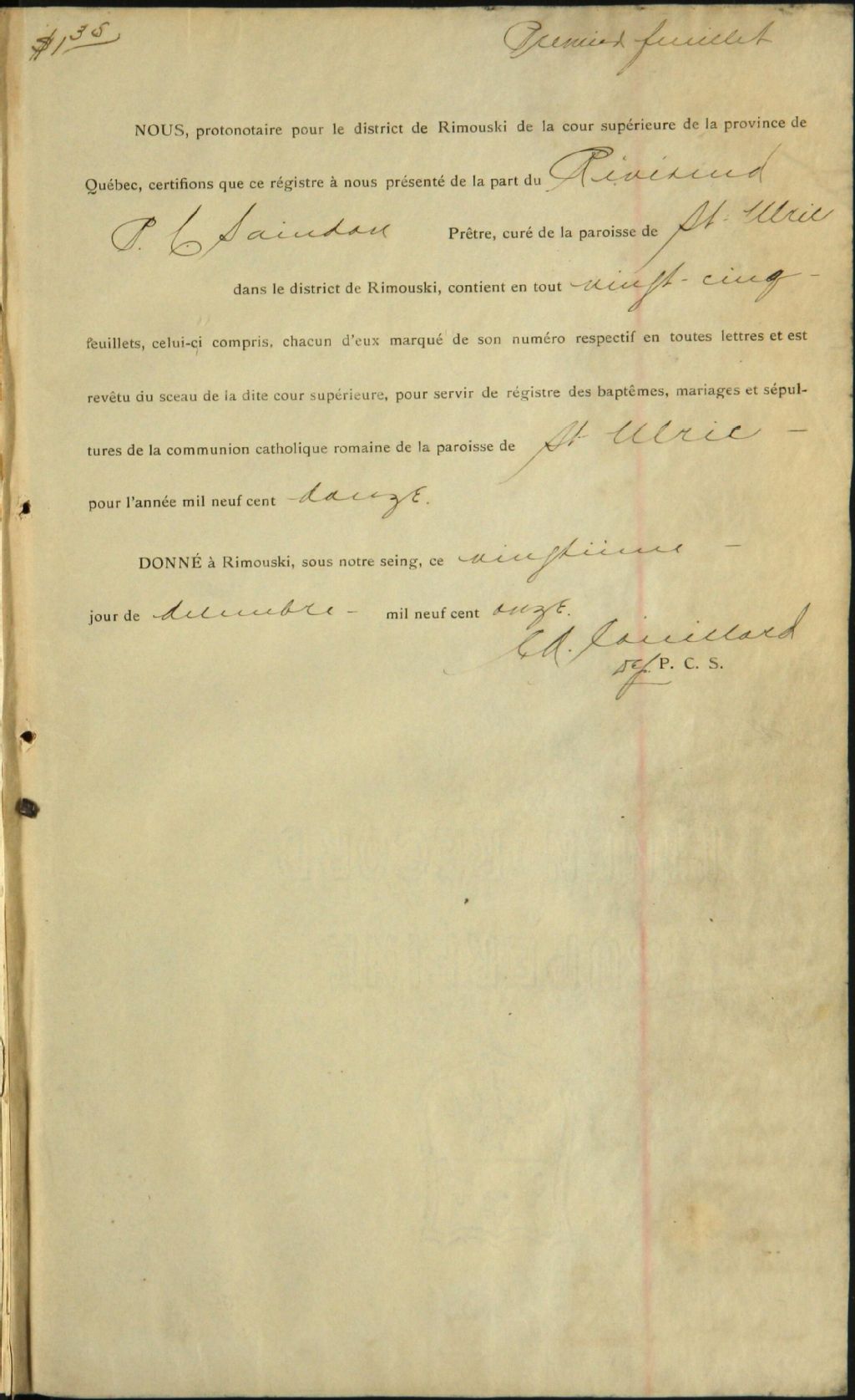 Saint-Ulric-de-Matane, 1868-1921, Archives nationales à Rimouski, Fonds Cour supérieure. District judiciaire de Rimouski. État civil, (01R,CE101,S21).