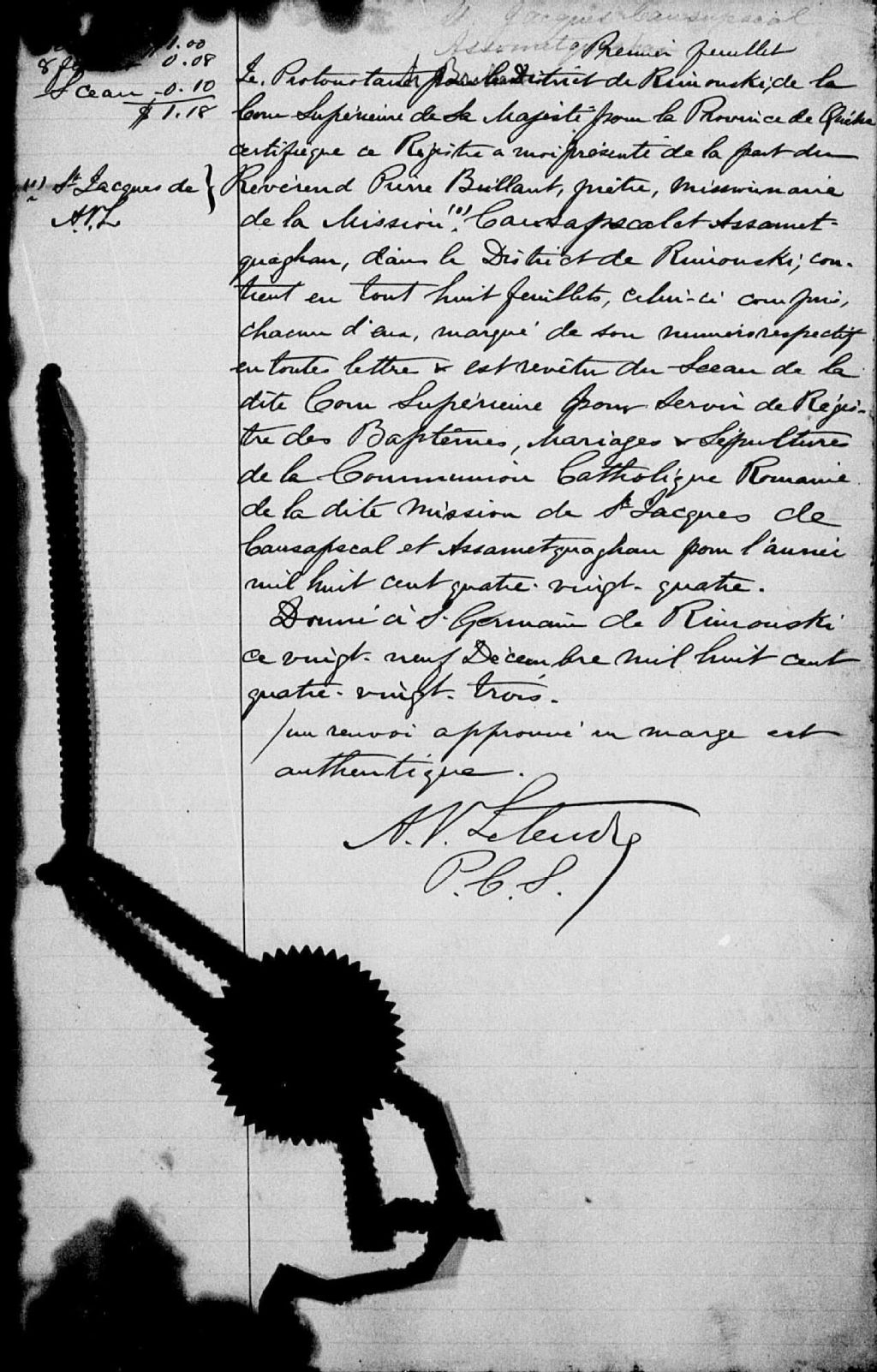Saint-Jacques-le-Majeur-de-Causapscal, 1884-1921, Archives nationales à Rimouski, Fonds Cour supérieure. District judiciaire de Rimouski. État civil, (01R,CE101,S28).