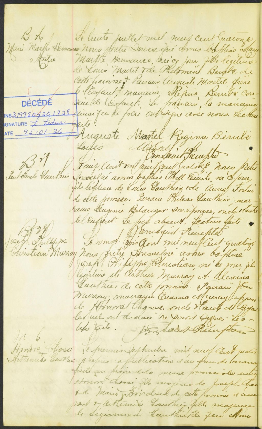 Saint-Luc, 1891-1921, Archives nationales à Rimouski, Fonds Cour supérieure. District judiciaire de Rimouski. État civil, (01R,CE101,S30).