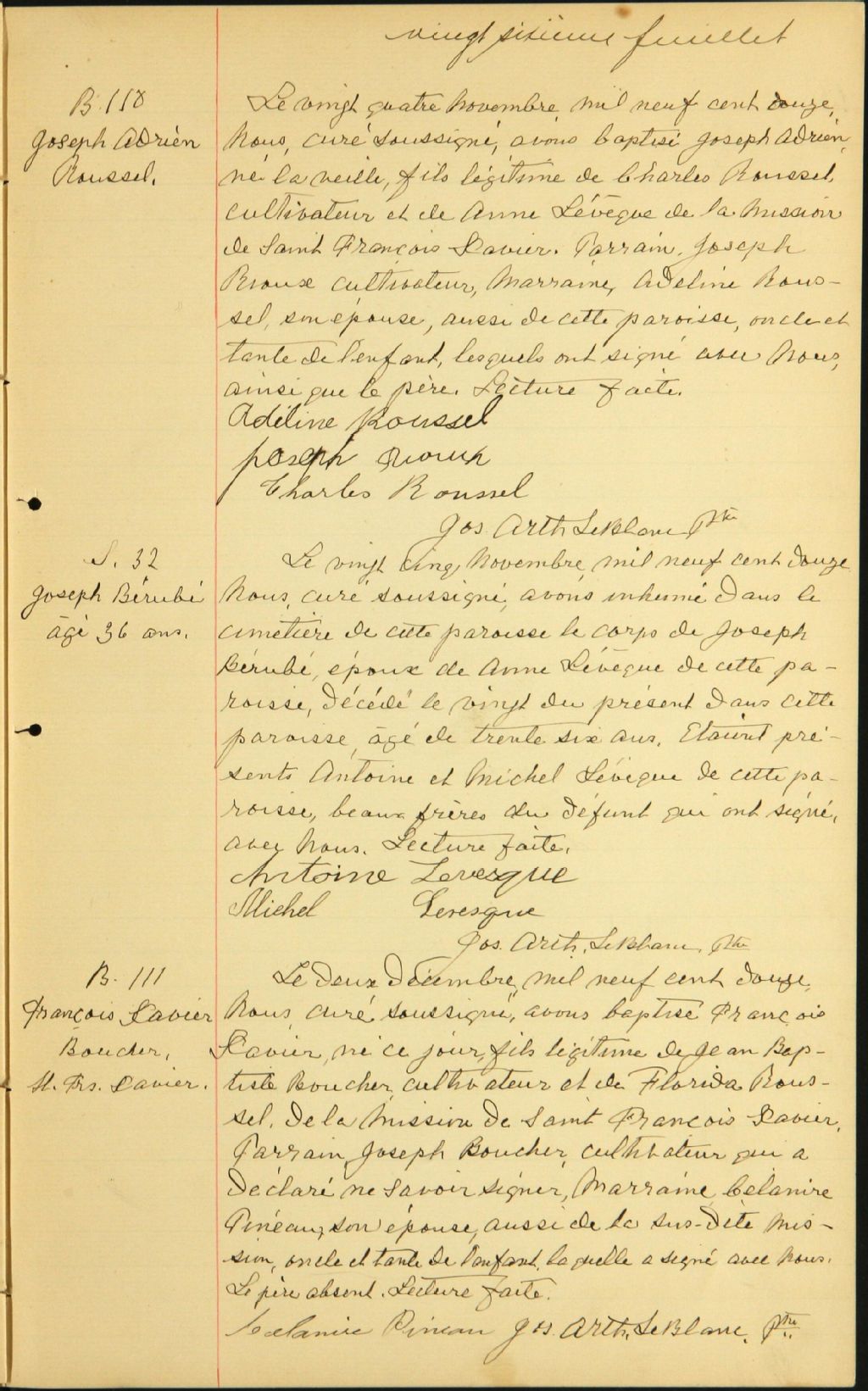 Saint-Gabriel, 1873-1921, Archives nationales à Rimouski, Fonds Cour supérieure. District judiciaire de Rimouski. État civil, (01R,CE101,S5).