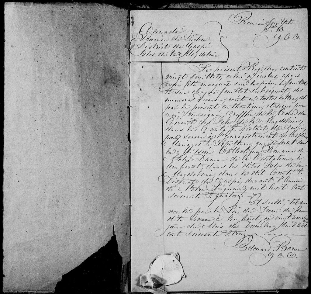 Notre-Dame-de-la-Visitation, 1853-1921, Archives nationales à Rimouski, Fonds Cour supérieure. District judiciaire de Gaspé. État civil, (01R,CE102,S1).