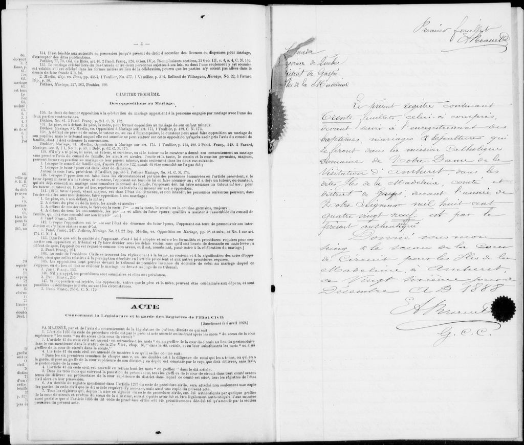 Notre-Dame-de-la-Visitation, 1853-1921, Archives nationales à Rimouski, Fonds Cour supérieure. District judiciaire de Gaspé. État civil, (01R,CE102,S1).