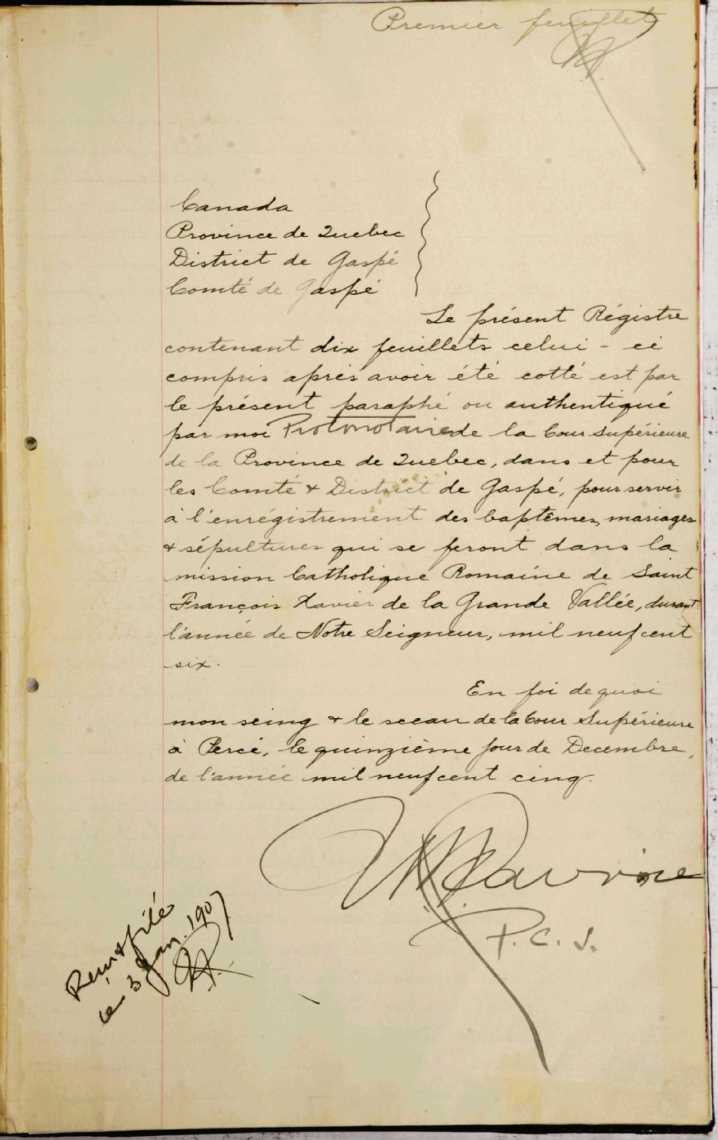 Saint-François-Xavier-de-Grande-Vallée, 1881-1920, Archives nationales à Rimouski, Fonds Cour supérieure. District judiciaire de Gaspé. État civil, (01R,CE102,S11).
