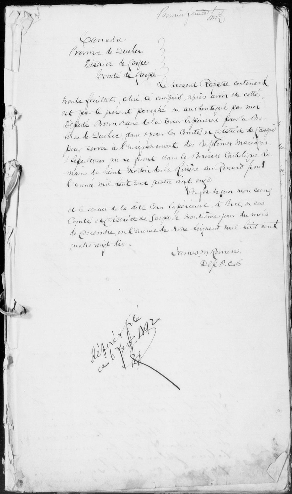 Saint-Martin-de-la-Rivière-au-Renard, 1855-1921, Archives nationales à Rimouski, Fonds Cour supérieure. District judiciaire de Gaspé. État civil, (01R,CE102,S10).