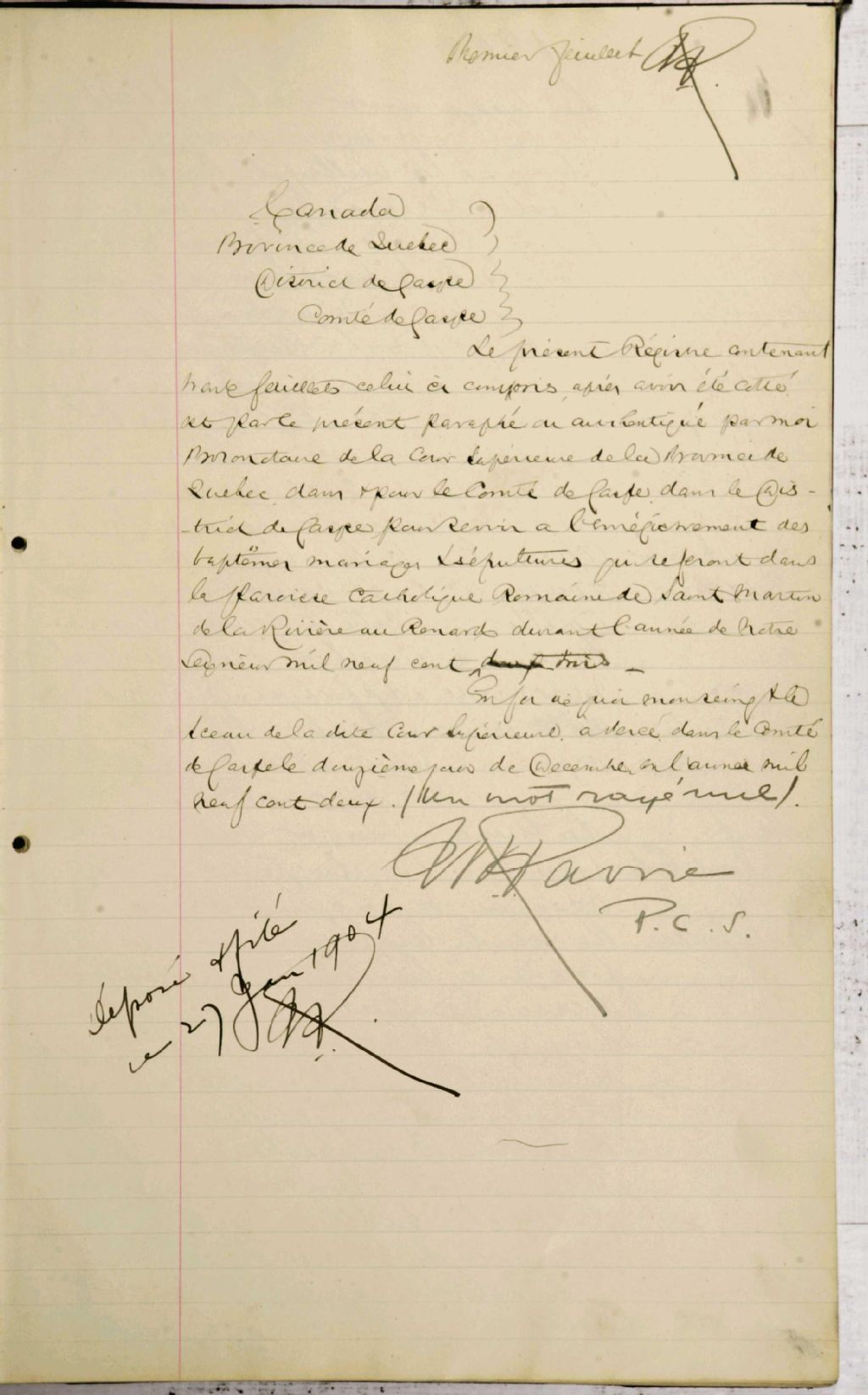 Saint-Martin-de-la-Rivière-au-Renard, 1855-1921, Archives nationales à Rimouski, Fonds Cour supérieure. District judiciaire de Gaspé. État civil, (01R,CE102,S10).