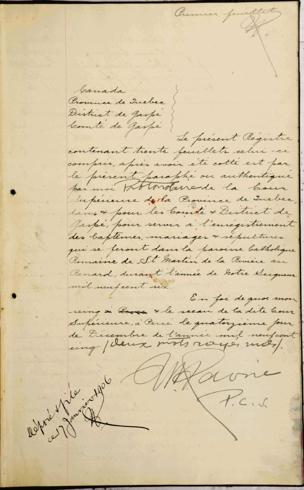 Saint-Martin-de-la-Rivière-au-Renard, 1855-1921, Archives nationales à Rimouski, Fonds Cour supérieure. District judiciaire de Gaspé. État civil, (01R,CE102,S10).