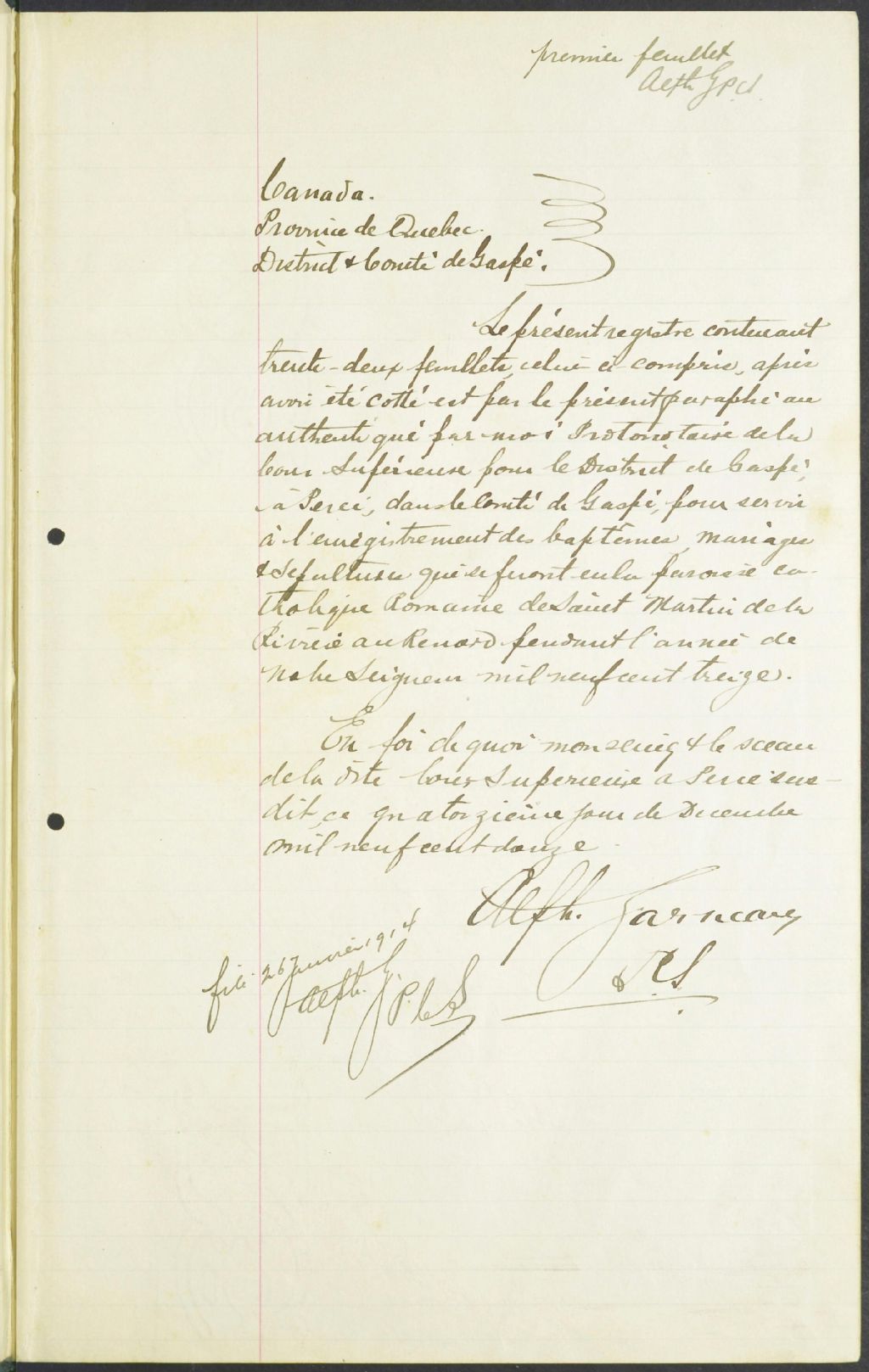 Saint-Martin-de-la-Rivière-au-Renard, 1855-1921, Archives nationales à Rimouski, Fonds Cour supérieure. District judiciaire de Gaspé. État civil, (01R,CE102,S10).